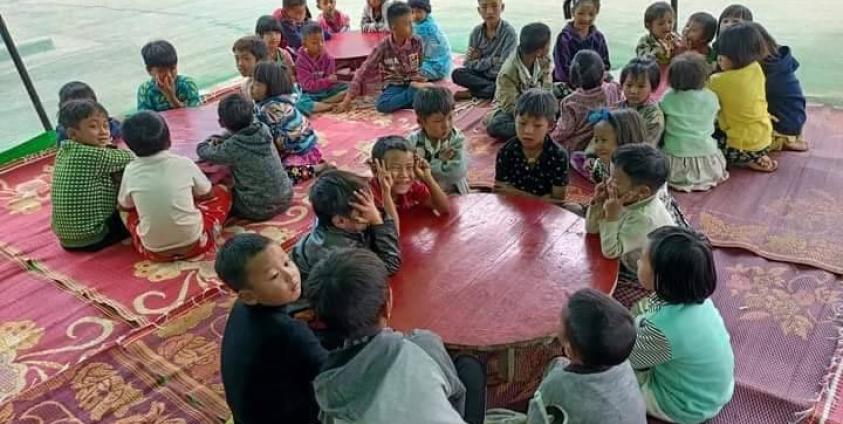 နောင်တရားမြို့ စစ်ရှောင်စခန်း (၃)နေရာမှ အသက် (၁၅)နှစ်အောက် စစ်ဘေးရှောင်ကလေးငယ် ၃၀၀ ဝန်းကျင်အား အခြေခံပညာ သင်ကြားပေးတာဖြစ်ကြောင်း ဒေသခံတစ်ဦးက ပြောသည်။