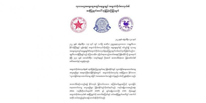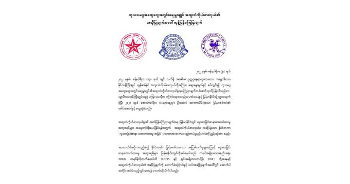 ယမန်နေ့ ဇန်နဝါရီလ ၂၀ ရက်နေ့က ကရင်နီအမျိုးသားတိုးတက်ရေးပါတီ(KNPP)၊ ကရင်အမျိုးသားအစည်းအရုံး(KNU)နဲ့ ချင်းအမျိုးသားတပ်ဦး (CNF) တို့က ပူးတွဲတောင်းဆိုလိုက်တာဖြစ်ပါတယ်။