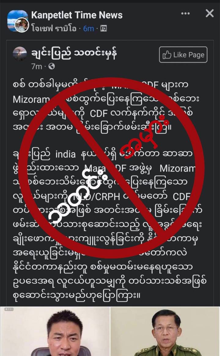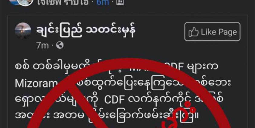 ဒီသတင်းအမှားကို We love ခေတ်ဘုန်းခ Group မှာ Ei အကောင့်မှ ဖလမ်းမြို့နယ်အတွင်း CAN/CDF အကြမ်းဖက်အဖွဲ့ ဝင်ရောက်တိုက်ခိုက်နေမှုကြောင့် ချင်းတိုင်းရင်းသားများ အိန္ဒိယကို ထွက်ပြေးနေရ ဆိုတဲ့ သတင်ခေါင်းစဉ်နဲ့ ရေးသားဖော်ပြထားတာဖြစ်ပါတယ်။