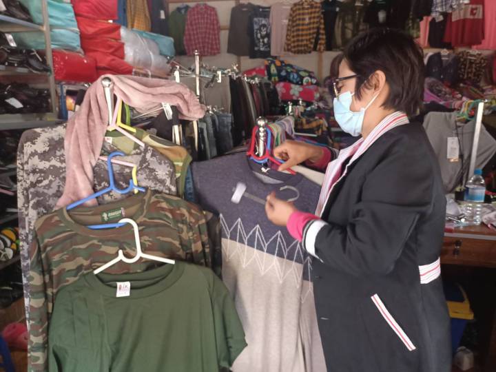 အဖြူ၊ အစိမ်းဝတ်ပြီး ကျောင်းခန်းထဲမှာ စာသင်နေရမယ့် ကျောင်းဆရာမတစ်ယောက် ခုတော့ အထည်ဆိုင် တစ်ခုမှာ အကူဝန်ထမ်းလုပ်ရင်း မိသားစု စားဝတ်နေရေးကို ဖြေရှင်းနေရပါတယ်။