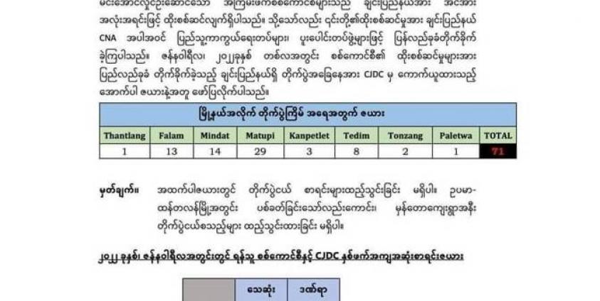 ဇန်နဝါရီလ၊ ၂၀၂၂ခုနှစ် တစ်လအတွင်း စစ်ကောင်စီတပ်၏ ထိုးစစ်ဆင်မှုများအား ပြည်လည်ခုခံ တိုက်ခိုက်ခဲ့သည့် ချင်းပြည်နယ်ရှိ တိုက်ပွဲအခြေနေအား ချင်း ေဒသကာကွယ်ရေးပူးပေါင်းတပ်ဖွဲ့ဖြစ်သည့် (CJDC) ၏ ထုတ်ပြန်ချက်အရ သိရသည်။