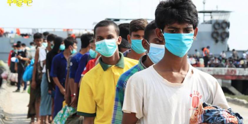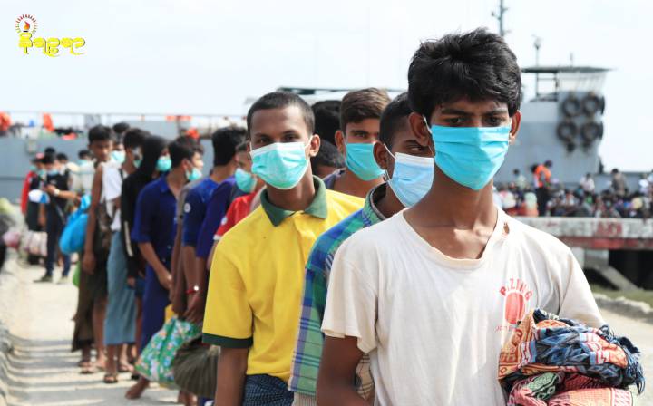 ဓာတ်ပုံ - စစ်တွေဆိပ်ကမ်းတွင် ၂ဝ၂ဝ ပြည့်နှစ်၊ ဧပြီလ ၂ဝ ရက်က တွေ့ရသည့် မူဆလင်ဘာသာဝင်များ။
