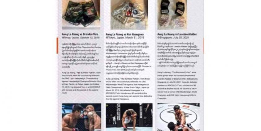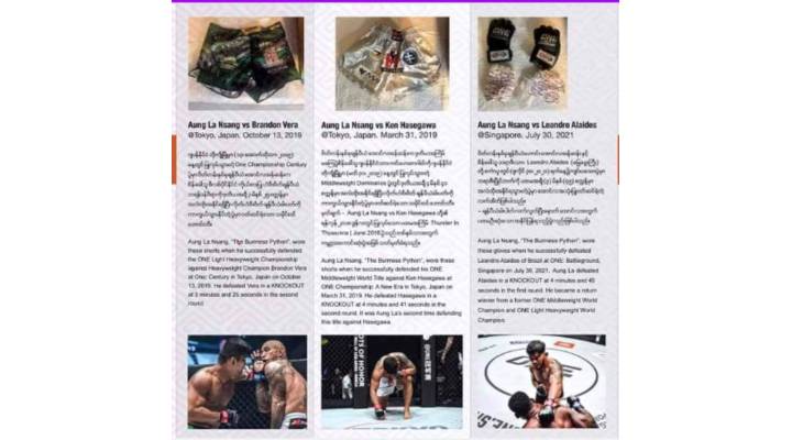 MMA One Championship ၏ သမိုင်းဝင်ပြိုင်ပွဲ ထိုးသတ်ရာတွင် အောင်လအင်ဆန် ဝတ်ဆင်ခဲ့သည့် ဘောင်းဘီ (၂) ထည်နှင့် လက်အိတ်ကို လေလံတင် ရောင်းချခဲ့ခြင်းဖြစ်ပြီး ပစ္စည်းတစ်ခုစီအတွက် ကြမ်းခင်းဈေးနှုန်း အမေရိကန် ဒေါ်လာ တစ်သောင်းမှ စတင်လေလံတင်ခဲ့ခြင်းဖြစ်ကာ အမေရိကန်နိုင်ငံ၊ကယ်လီဖိုးနီးယားပြည်နယ်(California) ၊ လော့အိန်ဂျယ်လစ်(Los Angeles) မြို့တွင် ကျင်းပခဲ့ခြင်း ဖြစ်သည်။