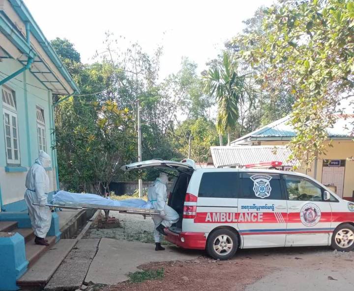 Caption: ကိုဗစ်ရောဂါဖြင့် သေဆုံးသွားသူကို သယ်ယူသွားစဉ်