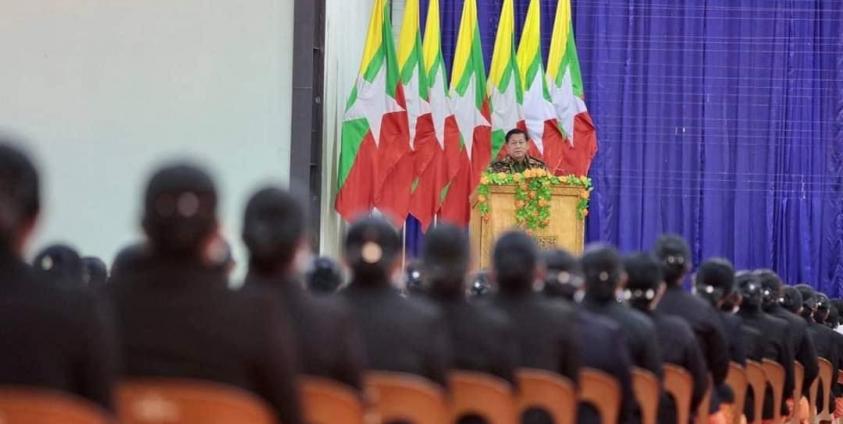 ၂၀၂၀ အထွေထွေရွေးကောက်ပွဲ မဲမသမာမှုကြောင့် ဖြစ်လာခဲ့တဲ့ နိုင်ငံရေးပြဿနာတွေကို တိုင်းရင်းသားလက်နက်ကိုင်အဖွဲ့တွေက အခွင့်အရေးယူနေကြောင်း အာဏာသိမ်းစစ်ခေါင်းဆောင်က တြိဂံဒေသတိုင်းစစ်ဌာနချုပ် တပ်နယ်မှာ အရာရှိနှင့် တပ်သားမိသားစုဝင်တွေကို တွေ့ဆုံပွဲမှာ ပြောခဲ့ပါတယ်။