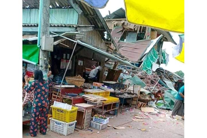 သထုံမြို့၊ အောက်ကျင်းရပ်ကွက်ရှိ သထုံမြို့မစျေး စျေးခေါင်းရုံးမှာ ပေါက်ကွဲမှုစတင်ခြင်းဖြစ်ပြီး စျေးဝယ်သူနှင့် စျေးရောင်းသူ ၉ ဦးခန့်လည်း ထိခိုက်ခဲ့ကြောင်း သိရသည်။