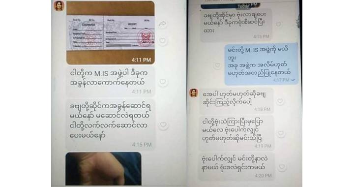 အဆိုပါ ငွေကြေး ခြိမ်းခြောက်တောင်းခံသူများသည် Mytel ဖုန်းနံပါတ် ၀၉၆၇၆၁၇၄၆၀၀ နှင့် ၀၉၆၇၃၈၂၈၂၆၆ စသည့်ဖုန်းနံပါတ်များဖြင့် ဖုန်းဆက်ခေါ်ကာ Viber နှင့် Aong Su San Ko ဆိုသည့် အကောင့်အမည် မှတစ်ဆင့် ခြိမ်းခြောက်မှုပြုလုပ်ကြောင်း သိရသည်။