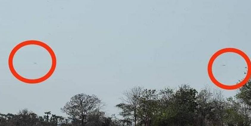အကြမ်းဖက် စစ်ကောင်စီက ယင်းမာပင်မြို့နယ် ဝါးစိမ်းတောင် တစ်ကြောကို ယနေ့ နေ့လယ် ၁၂ နာရီ ဝန်းကျင်မှ စကာ ရဟတ်ယာဉ် လေးစင်းဖြင့် ပစ်ခတ် နေသည်ဟု ဒေသခံ ပြည်သူ့ ကာကွယ်ရေး တပ်ဖွဲ့ဝင် တစ်ဦးက ပြောသည်။