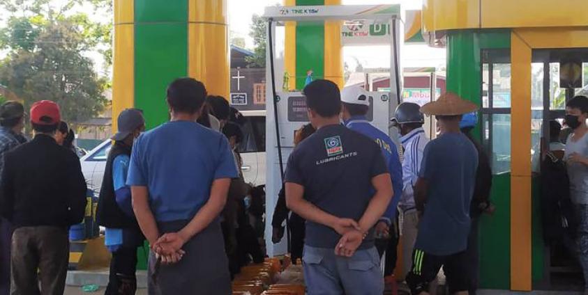 လတ်တလော ဓာတ်ဆီရောင်းချပေးနေသည့် တိုင်းကျော် ဆီပန့်ဆိုင်တွင်လည်း လူတစ်ဦးလျှင် ကျပ် ၇၀၀၀၀ ဖိုးအထိသာ ကန့်သတ်ရောင်းချပေးကြောင်းလည်းသိရသည်။