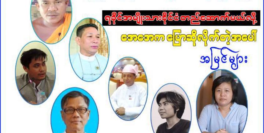 မြန်မာ့နိုင်ငံရေးတွင် AA နှင့် ရခိုင်ပြည်သူတို့လိုလားသည့် နိုင်ငံရေးအဆင့်အတန်းကို မရရှိလျှင် အနာဂတ် အမျိုးသားနိုင်ငံတော်ကို ကိုယ်တိုင်ဖန်တီးပြီး နိုင်ငံတကာနှင့် လက်တွဲတည်ဆောက်သွားမည်ဟု AA ပြောခွင့်ရသူ ဦးခိုင်သုခက မတ်လ ၅ ရက်နေ့က Online သတင်းစာရှင်းလင်းပွဲတွင် ထုတ်ဖော်ပြောကြားလိုက်သည်။