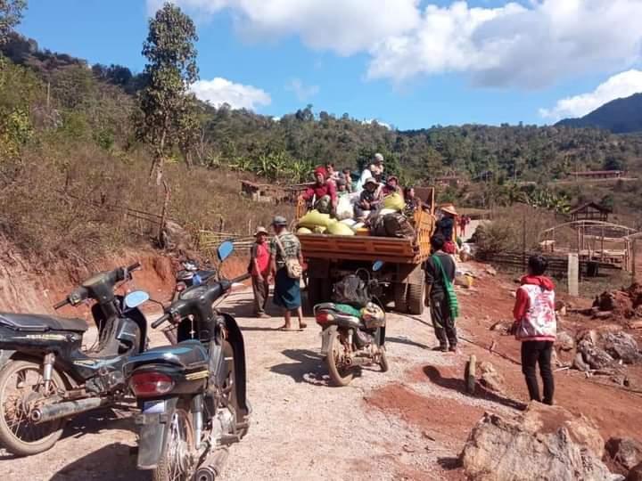 မတ်လ ၁၃ ရက်က မြန်မာစစ်တပ်မှ လက်နက်ကြီးနှင့် လေကြောင်းမှတိုက်ခိုက်မှုကြောင့် ဒေါငံခကျေးရွာမှ စစ်ဘေးရှောင်ဒေသခံများ ထပ်မံတိမ်းရှောင်နေရစဉ်။
