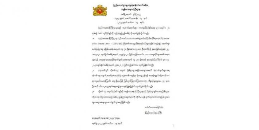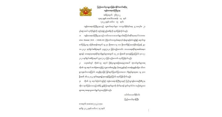 ကျန်းမာရေးဝန်ကြီးဌာနမှ ထုတ်ပြန်ထားသည့် ကြေငြာချက်မိတ္တူ