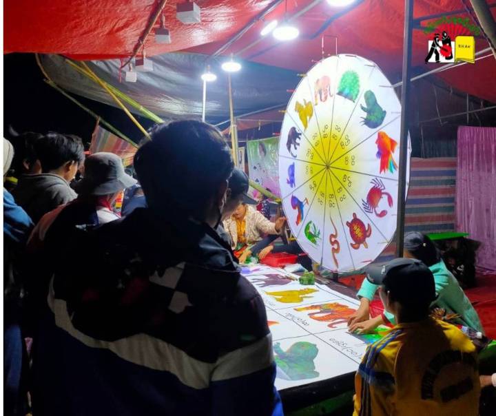 အကာအရံမပါ သက်ကယ်မိုးထားသည့် တဲကြီး တစ်လုံးထဲတွင် လူများစုဝေးနေပြီး ယွန်းခွက် တစ်ခုကို စိတ်အားထက်သန်စွာ စောင့်ကြည့်နေသည်။ ဆေးရောင်စုံ ဗီနိုင်းပေါ်တွင် အကောင်ပုံများ ရေးဆွဲထားပြီး ငွေစက္ကူများ ဖွေးဖွေးလှုပ်နေသည်။