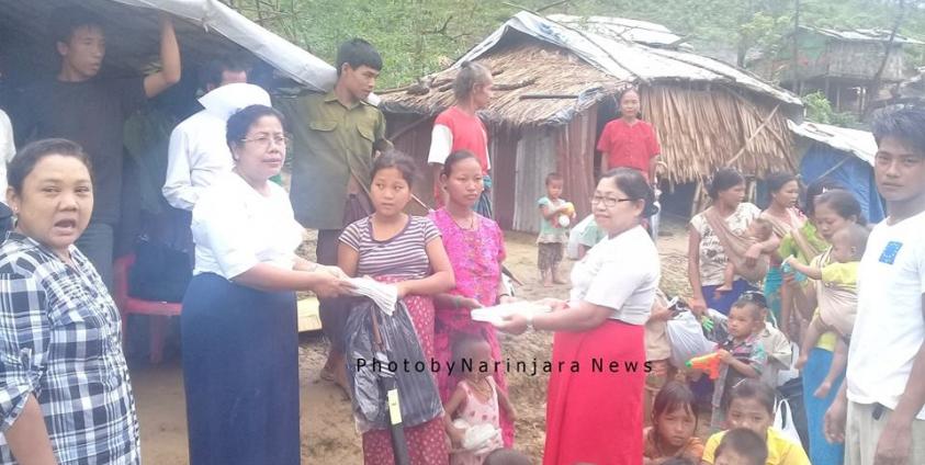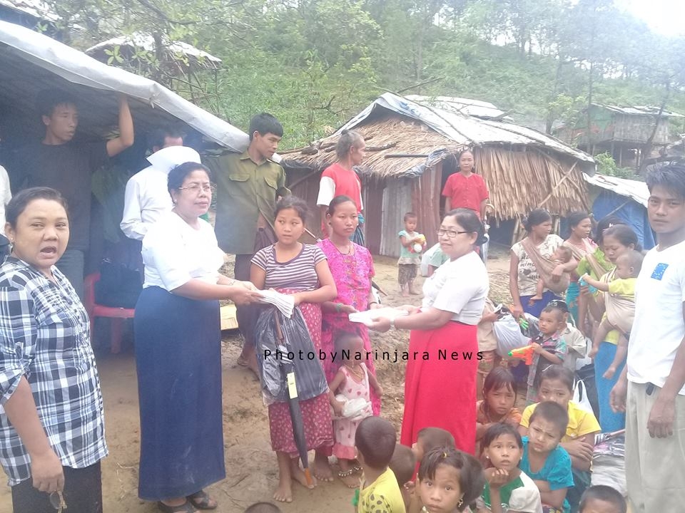 မြန်မာနိုင်ငံသူနာပြုနှင့်သားဖွားအသင်းမှ တစ်ဘက်နိုင်ငံမှ ရောက်ရှိခိုလုံနေကြသည့် မောင်တောမြို့ (၃) မိုင် သီဟိုအေးကျေးရွာရှိ မြိုအိမ်ထောင်စု (၁၈) စုအား ကူညီထောက်ပံ့မှုများ ပြုလုပ်ခဲ့သည်ဟု သတင်းရရှိသည်။