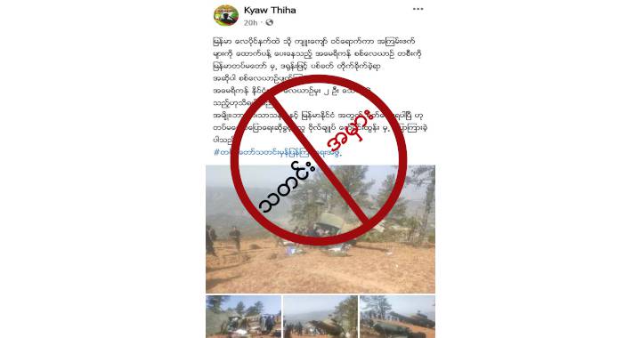အဆိုပါသတင်းအမှားကို ကျော်သီဟ အကောင့်မှ “မြန်မာ လေပိုင်နက်ထဲကို ကျူးကျော် ဝင်ရောက်ကာ အကြမ်းဖက်များကို ထောက်ပံ့နေတဲ့ အမေရိကန် စစ်လေယာဉ်တစ်စီးကို မြန်မာတပ်မတော်မှ ဒရုန်နဲ့ ပစ်ခတ်တိုက်ခိုက်ခဲ့ရာ အဆိုပါ စစ်လေယာဉ်ပျက်ကျသွားခဲ့ အမေရိကန် နိုင်ငံသားလေယာဉ်မှူး ၂ ဦး သေဆုံးခဲ့တယ်လို့သိရပါတယ်။ အမျိုး၊ ဘာသာ၊ သာသနာနဲ့ မြန်မာနိုင်ငံအတွက် စိတ်အေးရပါပြီလို့ တပ်မတော်ပြောရေးဆိုခွင့်ရှိသူ ဗိုလ်ချုပ်ဇော်မင်းထွန်းမှ ပြောကြားခဲ့ပါတယ်” လို့ရေးသားဖော်ပြထားပါတယ်။