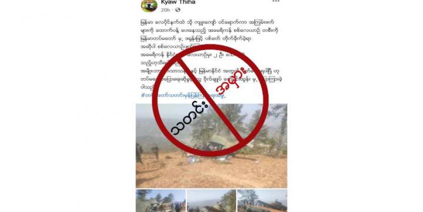 သတင်းအမှားမှာဖော်ပြထားသလို ပျက်ကျတာ လေယာဉ်မဟုတ်သလို အမေရိကန်နိုင်ငံက စစ်လေယာဉ်လည်းမဟုတ်ပါဘူး။ မြန်မာစစ်ကောင်စီရဲ့ရဟတ်ယာဉ်ဖြစ်ပါတယ်။