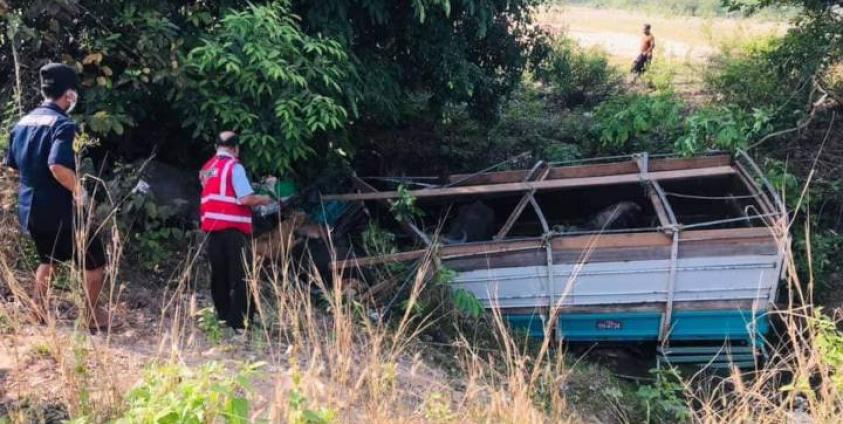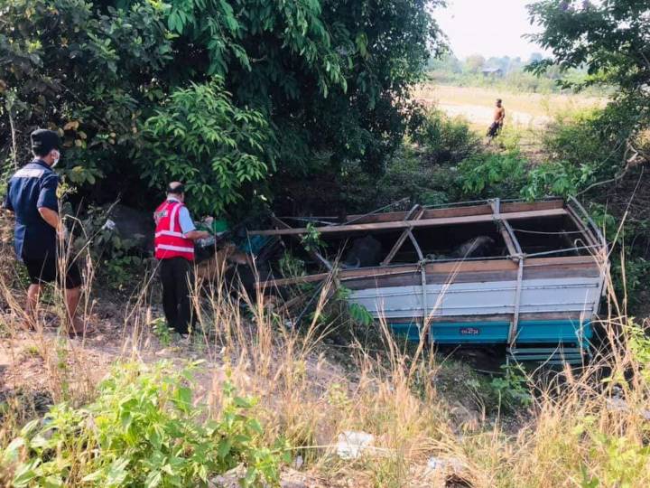 ကျွဲနွားတင်ကား လမ်းဘေးချောင်းထဲ ထိုးကျသွားတာကြောင့် ယာဉ်မောင်းနဲ့အတူ လာတဲ့ အမျိုးသား ကားညှပ်ပြီး ထပ်မံသေဆုံးခဲ့သလို ကျွဲနွားတချို့လည်း သေဆုံးခဲ့ပါတယ်။