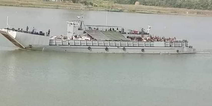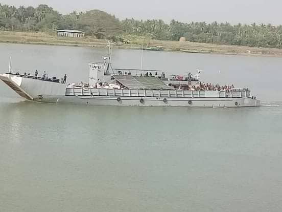 (ဓာတ်ပုံ- များမကြာမီက အင်အားဖြည့်တင်းနေသော ရေတပ်ဇက်သင်္ဘောတစ်စီးကို ရခိုင်တွင်တွေ့ရစဉ်/မူရင်း ဓာတ်ပုံရိုက်ကူးသူအား Credit ပေးပါသည်)