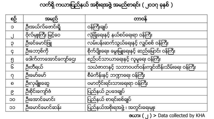 လေ့လာစုဆောင်း၍ လက်ရှိ ကယားပြည်နယ် အစိုးရအဖွဲ့ အမည်စာရင်းကို တင်ပြလိုက်ပါသည်။