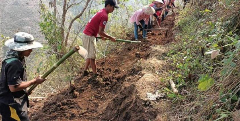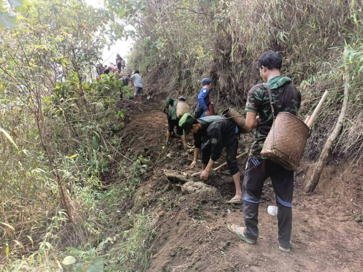 အဲ့ဒီကျေးရွာ သုံးရွာအတွက် ရွာချင်းဆက် လမ်းပေါက်နိုင်ဖို့အတွက် ရွာသူ၊သားအင်အား ၁၃၀ လောက်က သုံးရက်ဆက် လုပ်အားပေးလုပ်ခဲ့ကြတာပါ။