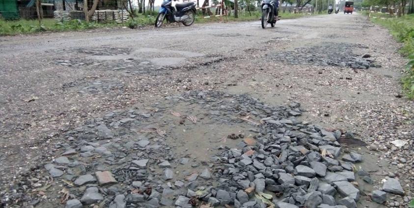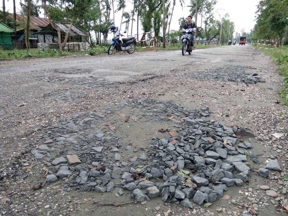 အဆိုပါ လမ်းသည် ကတ္တရာလမ်းဖြစ်ပြီး ပျက်စီးနေသည့် လမ်းပေါက်များကို ကတ္တရာလောင်းပြီး ပြန်လည်ပြုပြင်ခြင်း မဟုတ်ဘဲ သဲကျောက်များကို ခွဲပြီး ဖာထေးထားသည့်အတွက် ပြုပြင်ပြီး မကြာမီမှာပင် ပြန်၍ပျက်စီးသွားကြောင်း သိရသည်။