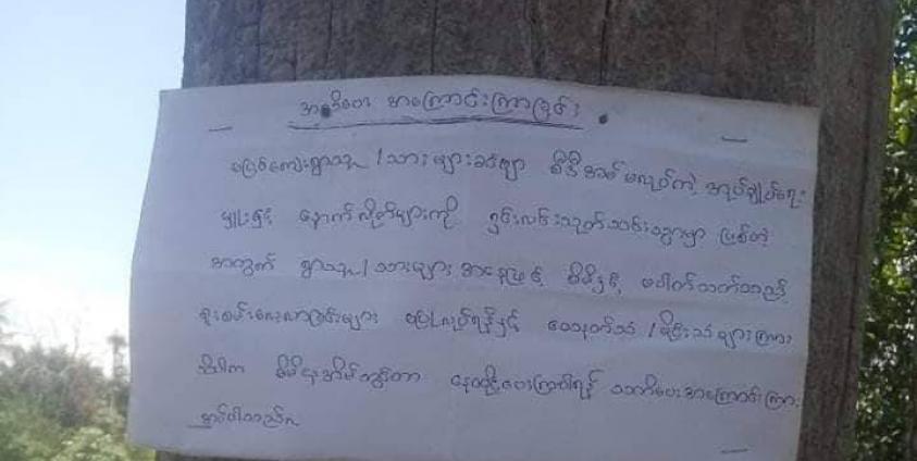 အင်းတော်ကြီးဒေသမပြင်ကျေးရွာမှာ အုပ်ချုပ်ရေးမှူးတွေနှုတ်ထွက်ဖို့သတိပေးစာ ကပ်ခံရ