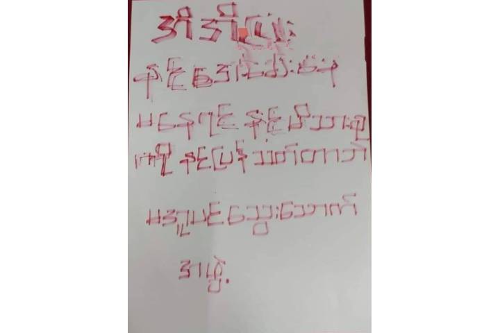 ထိုနေ့ညမှာပင် မအူပင်မြို့နယ် လွှတ်တော်ကိုယ်စားလှယ် ဒေါ်အိအိပြုံး၏ အိမ်ရှေ့တွင်လည်း “နင်အေးဆေးနေ မနေရင် နင့်မိသားစုကို နင်ပြန်သတ်တာဘဲ” ဟု ရေးသားထားသည့် ခြိမ်းခြောက်စာ တစ်စောင် လာချသွား သည် ဟု ယင်းရပ်ကွက် နေထိုင်သူများက ပြောသည်။