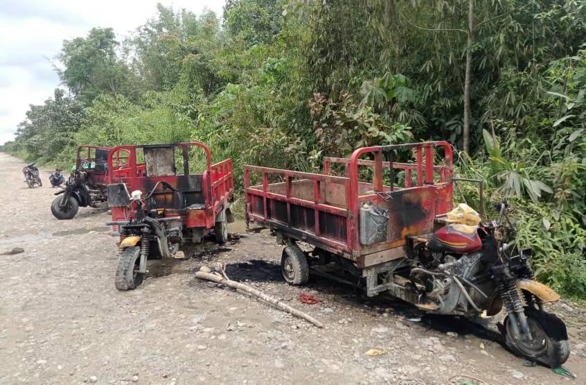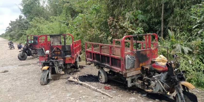 အဆိုပါ သုံးဘီးကား ၃ စီးသည် တနိုင်းမြို့ဘက်မှ ရှင်ဗွေယန်ဘက်သို့ ည ၈ နာရီခွဲဝန်းကျင်ခန့်တွင် မောင်းနင်းလာခဲ့ရာ တခက် နှင့် ခလုန်းကျေးရွာ ၂ခုကြားတွင် မီးရှို့ဖျက်ဆီးပေးလိုက်ခြင်းဖြစ်သည်ဟု ထိုဒေသရှိ KIA ဘက်မှ တာဝန်ရှိသူတစ်ဦးက KNG သတင်းဌာနကို ယခုလိုပြောဆိုခဲ့သည်။