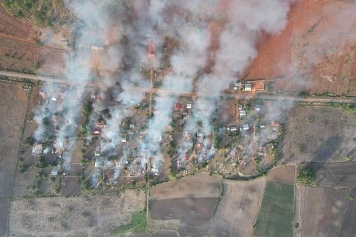 ဖယ်ခုံမြို့နယ် ဆောင်နန်းခဲကျေးရွာလုံးကျွတ် မီးရှို့ခံရ