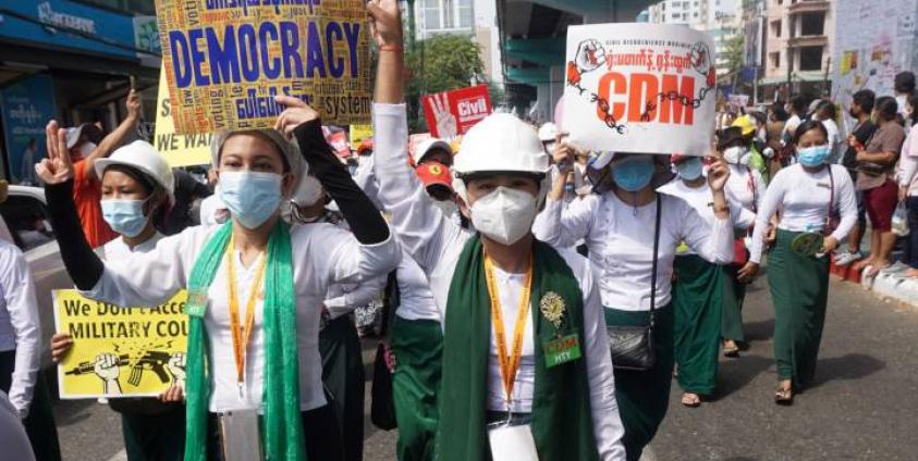 မွန်ပြည်နယ်မှာတော့ စစ်တပ် အာဏာသိမ်းမှုကို လက်မခံတာကြောင့် ပညာရေး CDM ဝန်ထမ်း ထောင်နဲ့ချီ အကြမ်းမဖက်တဲ့ နည်းလမ်းနဲ့ အာဏာဖီဆန်ရေး CDM လှုပ်ရှားမှုမှာ ပါဝင်ထားပါတယ်။
