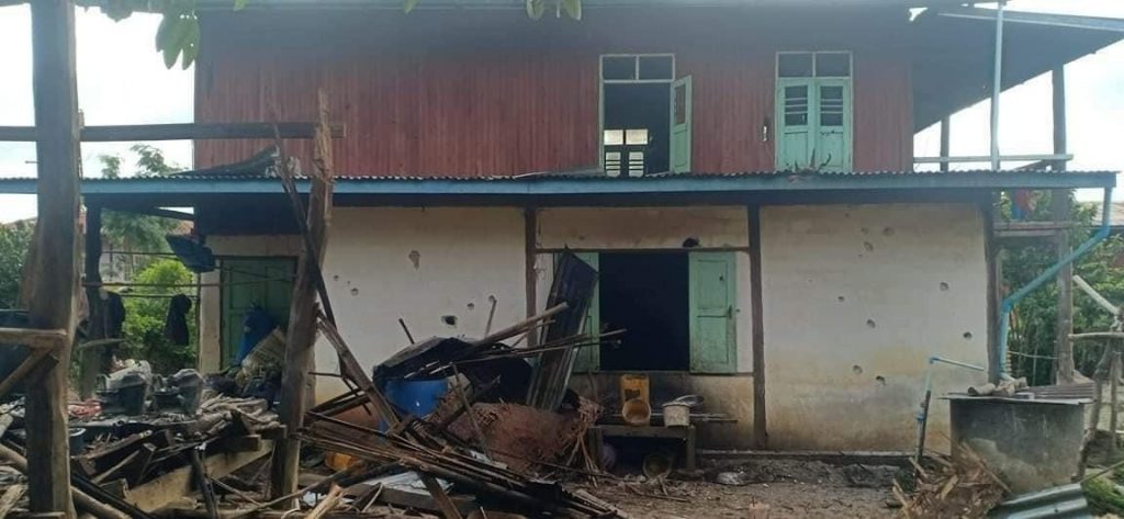 လက်နက်ကြီးထိမှန်ပြီး ပြည်သူနေအိမ်ပျက်စီး