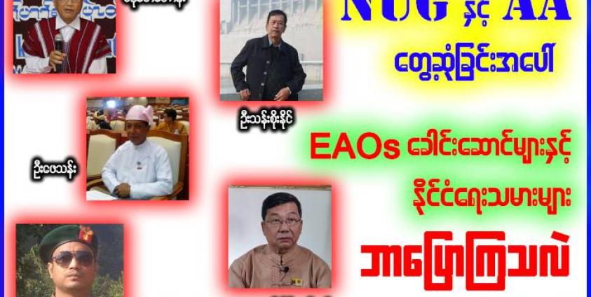 ဆိုတော့ ဒီဘက်ကဖြစ်တည်မှုကို သူတို့ကအသိအမှတ်ပြုတယ်။ အသုံးအနှုန်းတွေကအစ ပြောဆိုထားတော့ နိုင်ငံရေးအရ AA ဘက်ကလည်း အားသာချက်ရတယ်ပေါ့။ NUG အပေါ်မှာလည်း ULA က စစ်ကောင်စီကို မတွေ့ဘဲ သူတို့နဲ့တွေ့တယ်ဆိုတော့ အသိအမှတ်ပြုတယ်ဆိုတော့ သဘောလည်းဖြစ်သွားတယ်ပေါ့။ ဒါကိုလည်း NUG ဘက်က လိုလားနေတာလည်းရှိမယ်။ ဒါကြောင့် ဒီလိုတွေ့ဆုံမှုတွေဟာ နှစ်ဦးနှစ်ဘက် အကျိုးမနည်းပါဘူး။ သို့သော်လည်း ဘယ်လောက်အတိုင်းအတာထိ ကြီးကျယ်ဖြစ်ထွန်းမလဲဆိုတာကို မပြောနိုင်သလို မျှော်လင့်လို့လည်းမရသေးဘူး။ ဒီကြားထဲမှာ ULA/AA နဲ့ ဘာဖြစ်လာမလဲဆိုတဲ့ အခြေအနေ NUG နဲ့ ဆက်လက် ဘယ်လိုရှေ့ဆက်မလဲဆိုတာကိုလည်းကြည့်ပြီးမှ အဖြေပေါ်လာမယ်။