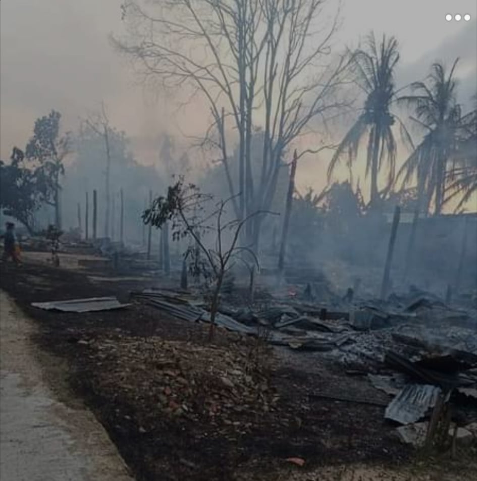 “မနေ့ညနေပိုင်း ၂နာရီလောက်မှာ လက်နက်ကြီးပစ်ပြီးတာနဲ့ မီးရှို့တာဘဲ လက်နက်ကြီးထိလို့ ဘုန်းကြီးကျောင်းက ကိုရင်နှစ်ပါး သေတယ်။ ပြီးတော့ သာမန်ပြည်သူက ၁၆ ယောက်ထိထားတယ်လို့ သိရတယ်။ တစ်ရွာလုံးနီးပါးလည်း မီးရှို့ဖျက်ဆီးသွားတယ်” ဟု ဒေသတွင်းရင်းမြစ်တစ်ဦးက ပြောသည်။