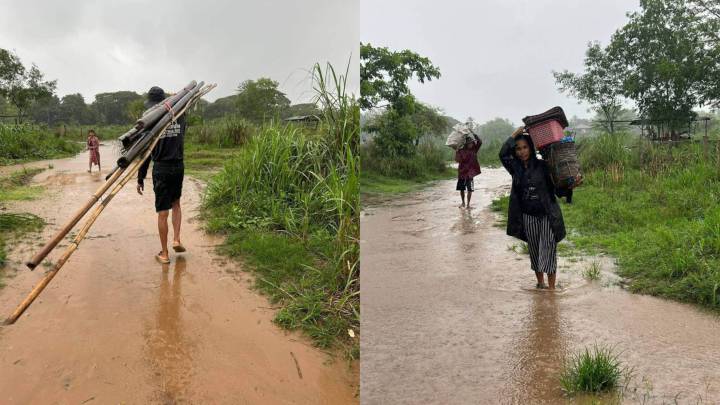 မုတ်သုန်မုန်တိုင်းမိုး အဆက်မပြတ်ရွာသွန်းခြင်းကြောင့် ထိုင်း-မြန်မာနယ်စပ် သောင်ရင်းမြစ်ရေသည် နှစ်နိုင်ငံနယ်စပ် တောင်ကုန်းများမှ တောင်ကျမိုးရေစီး၀င်ပြီး မြစ်ရေတက်လာသဖြင့် မြစ်ကမ်းဘေးတွင် နေထိုင်စစ်ရှောင်နေကြသည့် စစ်ဘေးရှောင်ကျေးရွာအစုအဖွဲ့များရေ ဘေးလွတ်ရာ ဆက်လက်ရွှေ့ ပြောင်းနေထိုင်နေကြရသည့်အခြေအနေတွင် ၎င်းစစ်ရှောင်နေရသော ပျံကျအလုပ်သမားမိသားစုဝင် ၁၀၀ ဦးခန့်လည်း နေရာထိုင်ခင်းအခက်အခဲကြုံတွေ့ရခြင်းဖြစ်သည်။
