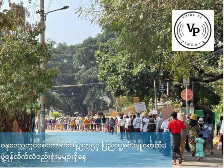 “တစ်ရပ်ကွက်ကို လူ ၁၂ ယောက် တစ်ရွာကို လူ ၁၂ ယောက် ပေးရမယ်ဆိုပြီး အခု လူလိုက်စုနေတယ်” ဟု စစ်ကောင်စီတပ် လက်အောက်ခံ အဖြစ် ဖွဲ့စည်းမည့် ဓနုပြည်သူ့စစ် (သို့) Danu Army ဖွဲ့စည်းရန် လူစုဆောင်းနေကြောင်း ပင်းတယမြို့ခံ အမျိုးသမီး တစ်ဦးက ပြောသည်