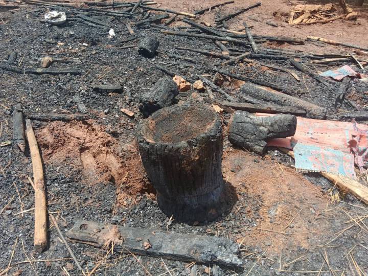 မီးလောင်ကျွမ်းသွား ပြီး ကျန်ရစ်ခဲ့တဲ့ နေအိမ် အပိုင်းအစများ။