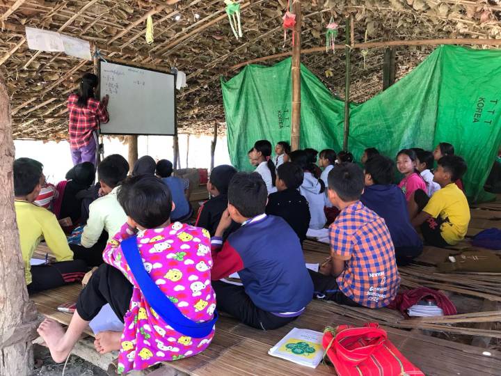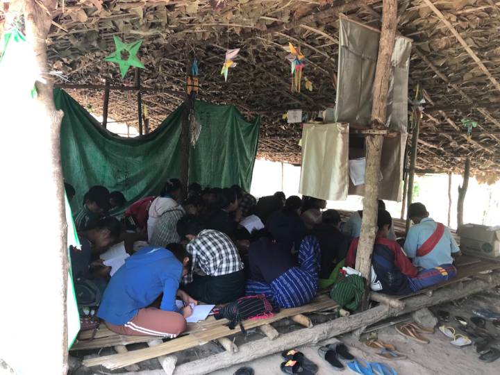 ကရင်နီပြည် စစ်ဘေးရှောင်စခန်းတခုတွင် ကလေးငယ်များ ကျောင်းပညာရေး ဆက်လက်သင်ကြားနေ (Photo: KT)