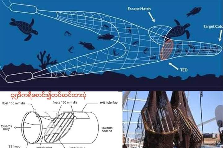 ရခိုင်တွင် ငါးဖမ်းပိုက်များအတွင်း လိပ်လွတ်မြောက်ရေးကိရိယာ -Turtle Excluder Device(TED) မတပ်ဆင်ထားသည့် ငါးဖမ်းစက်လှေ ၉ စီးကိုအရေးယူထားကြောင်း ပြည်နယ်ငါးလုပ်ငန်းဦးစီးဌာနမှ သိရသည်။
