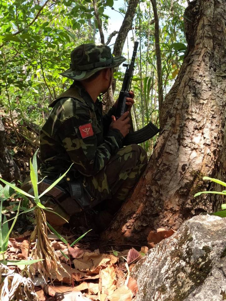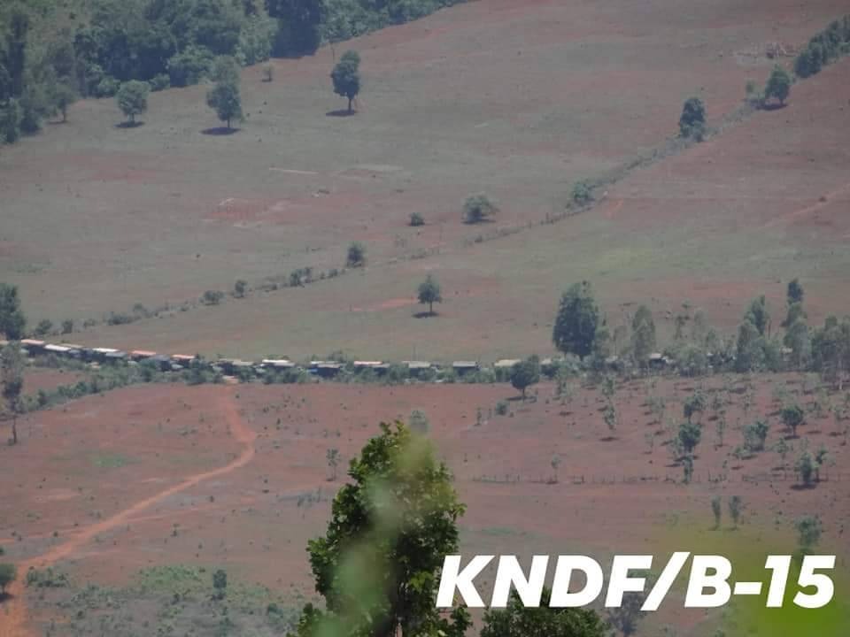 ဒီးမောဆိုနှင့် ဘောလခဲအကြားမြင်တွေ့ရသော စ.က.စ စစ်ယာဉ်တန်း (Photo: KNDF/B-15)