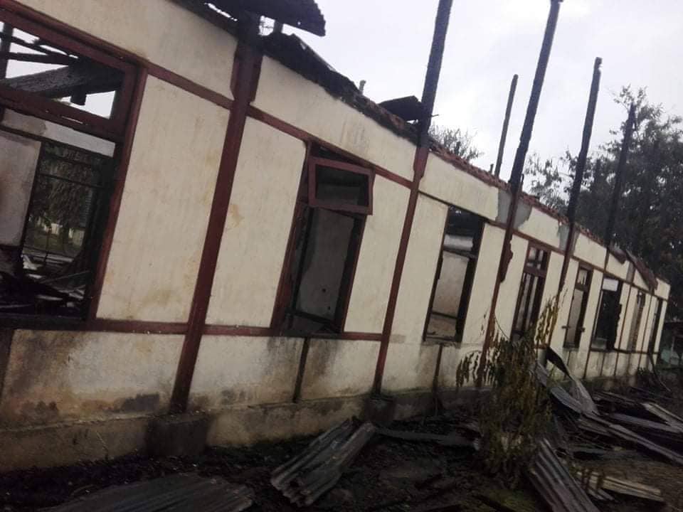 ဇွန်လ ၁၅ ရက်နေ့က ဖြစ်ပွားခဲ့သည့် မီးလောင်မှုကြောင့် နှစ်ထပ် ကျောင်းဆောင်တစ်ဆောင်လုံး မီးလောင်သွား ပြီး ကျောင်းအတွင်းရှိ ကျောင်းသုံးပစ္စည်းများ၊ စားပွဲ၊ ထိုင်ခုံ အားလုံးမီးလောင်သွားသည်ဟု ရပ်ကွက် အတွင်း နေထိုင်သူများက ပြောသည်။