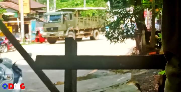ယနေ့ နံနက်ပိုင်းတွင် မြန်မာစစ်သားများသည် စစ်ကားနှစ်စီးဖြင့် သေနတ် ၁၀ ချက်ခန့် ပစ်ဖောက်ဝင်ရောက်လာ ကာ လမ်းသွား၊ လမ်းလာ ဒေသခံများ၏ ဖုန်းများကို စစ်ဆေးမှုများရှိနေကြောင်း အခြားဒေသခံတစ်ဦးက ပြော သည်။