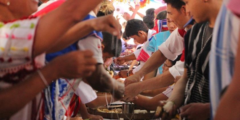 မဲဆောက်ဒေသရှိ ရွှေ့ပြောင်းကရင်များ စုပေါင်းချည်ဖြူဖွဲ့ အခမ်းအနားစည်ကား