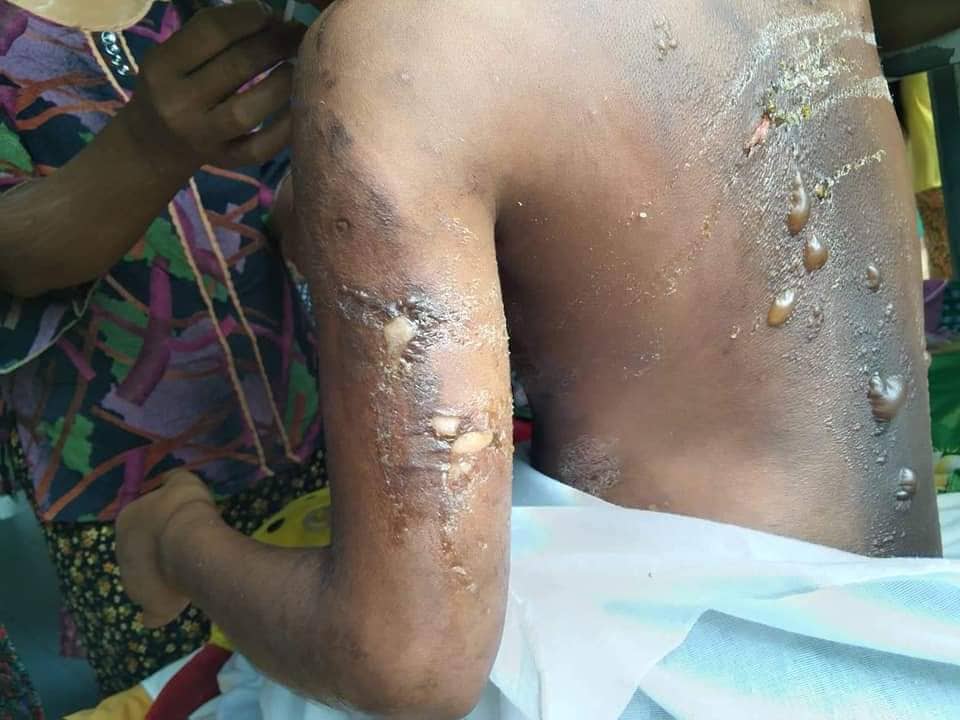 ရိုက်နှက်ခံထားရမှုကြောင့် ဦးခေါင်းဖူးယောင်ပေါက်ပြဲဒဏ်ရာ၊ နောက်ကျောပြင်နှင့် လက်တို့တွင် ရေပူလောင်းခံ ထားရသည့် ဖုလောင်းဒဏ်ရာများကို မြင်တွေ့သည်ဟု ရွာသားများက ဆိုသည်။