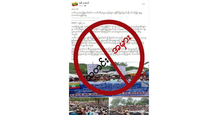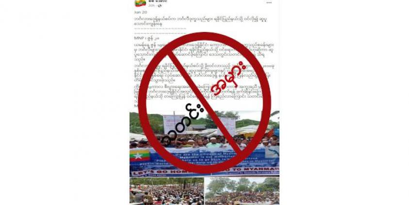 ဒီသတင်းအမှားကို စစ်အောင်ဆိုတဲ့ Facebook အကောင့်မှာ “ဇွန် ၁၉ရက်က ဘင်္ဂလားဒေ့ရှ်နိုင်ငံ၊ ကော့ဘဇားခရိုင်၊ ဒုက္ခသည်စခန်းများမှ ဘင်္ဂလီများသည် မြန်မာနိုင်ငံ၊ ရခိုင်ပြည်နယ်သို့ ဝင်ရောက်လိုသည်ဟုဆိုကာ ဆူပူသောင်းကျန်းမှုများ လုပ်ဆောင်ခဲ့ကြောင်း ဒေသတွင်းသတင်းများအရ သိရသည်။”