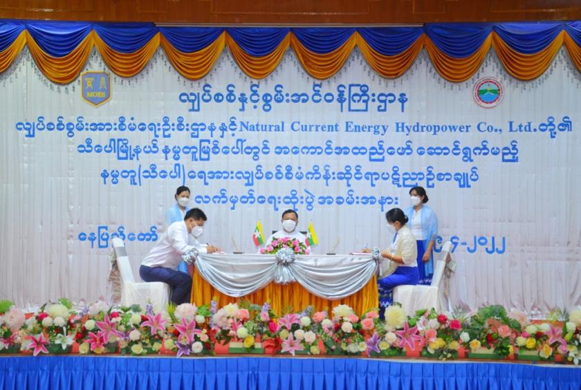 Natural Current Energy Hydropower Co,Ltd နဲ့ လျှပ်စစ်နှင့် စွမ်းအင်ဝန်ကြီးဌာန၊ လျှပ်စစ်ဓာတ်အားစီမံရေးဦးစီး ဌာနတို့အကြား ကျောက်မဲခရိုင် သီပေါမြို့နယ် နမ္မတူမြစ်ပေါ် မှာ အကောင်အထည်ဖော်တည်ဆောက်မယ့် နမ္မတူ (သီပေါ) ရေအားလျှပ်စစ်စီမံကိန်းဆိုင်ရာ ပဋိညာဥ်စာချုပ်ကို ဧပြီ ၂၉ ရက်နေ့တုန်းက လက်မှတ်ရေးထိုးခဲ့ ပါတယ်။