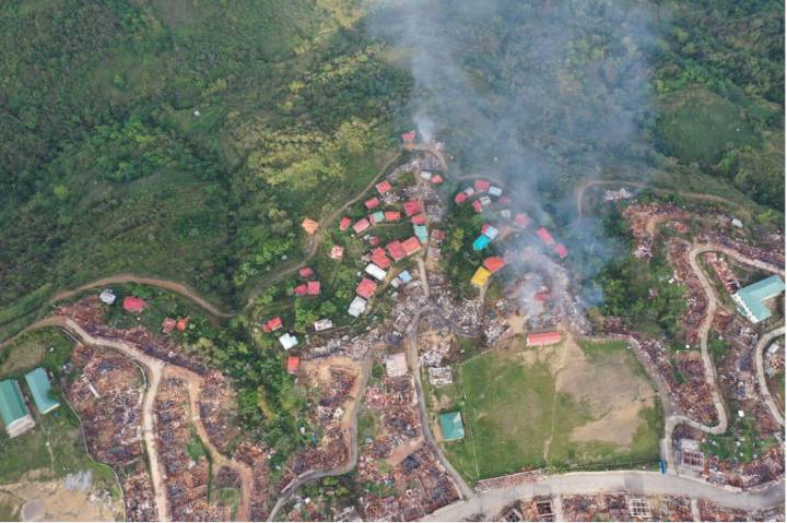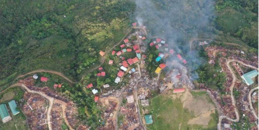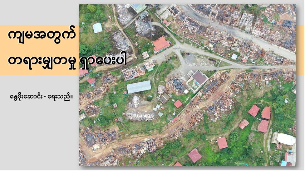 ၂၀၂၁ အောက်တိုဘာ ၂၉ ရက်ကလည်း စစ်ကောင်စီတပ်သားတွေ မီးရှို့လို့ ကျမပြည်သူပြည်သားတွေ ပိုင်တဲ့ နေအိမ် ၁၆၄ လုံး မီးလောင်ပြာကျသွားခဲ့ရတယ်။ အဲဒီမီးလောင်ပြာကျသွားတဲ့အထဲမှာ Church on the Rock (CO TR) နဲ့ Presbyterianလို့ ခေါ်တဲ့ အထင်ကရ ခရစ်ယာန်ဘုရားရှင်ခိုးကျောင်းနှစ်ခုလည်း မီးလောင်ကျွမ်းသွားခဲ့ တယ်။ ပြီးတော့ CB ဘဏ်ရုံးလည်း မီးလောင်တဲ့အထဲ ပါသွားတယ်။ ပြီးတော့ နိုင်ငံတကာအကူအညီပေးရေးအဖွဲ့ တစ်ခုဖြစ်တဲ့ Save The Children အဖွဲ့ရဲ့ အဆောင်အအုံတွေလည်း မီးလောင်တဲ့အထဲ ပါသွားသေးတယ်။ သူတို့ကတော့ ထိတ်လန့်တုန်လှုပ်မိတယ်လို့ စာတွေဘာတွေ ထုတ်လိုက်သေးတယ်။