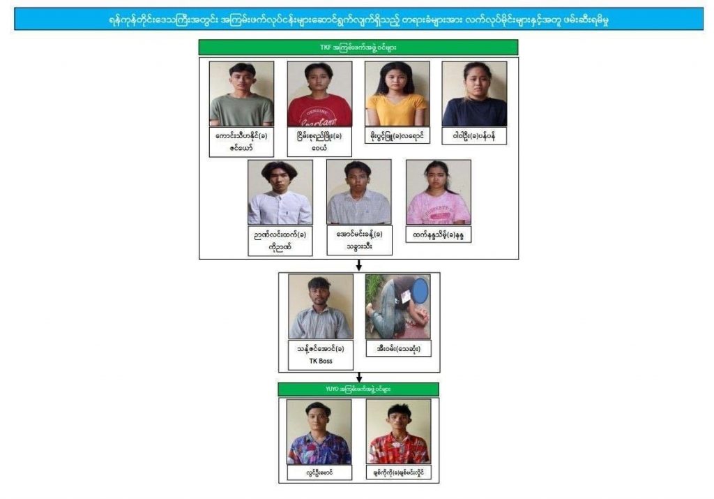 “ပြီးခဲ့တဲ့ ဇွန်လ (၁၆) ရက်မှာ ဒဂုံမြို့သစ် (တောင်ပိုင်း) မြို့နယ်၊ ဧရာဝတီလမ်းရှိ ရဲကင်းကို ဖောက်ခွဲရေး လုပ်ခဲ့တဲ့ အဖွဲ့သားတွေပါ၊ သူတို့ကို ဇွန်လ ၁၄ ရက်မှာ ၇ ယောက်အရင်ခြေရာခံမိပြီး ဖမ်းမိတယ်၊ ၁၆ ရက်နေ့မှာတော့ ၃ ယောက်ဖမ်းမိတယ်”ဟု မြေပြင်လှုပ်ရှားသည့်အဖွဲ့နှင့် နီးစပ်သူ လူငယ်တစ်ဦးက သျှမ်းသံတော်ဆင့်ကို ပြောသည်။