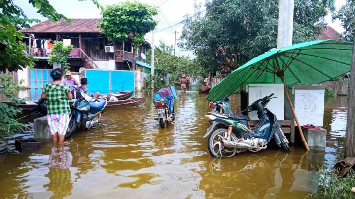 " ရေတွေကြီး မိုးတွေရွာ ဘယ်တော့မှ မပြတ် စိတ်ညစ်တာကြီး။ (၄), (၅) ရက်အတွင်းမှာပါ့အေ ရေတွေကြီး မိုးတွေရွာတယ်” လို့ ဒေသခံက ဆိုပါတယ်။