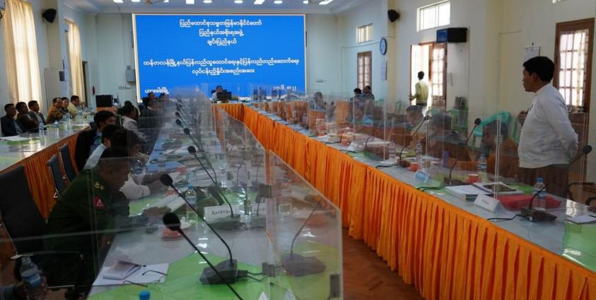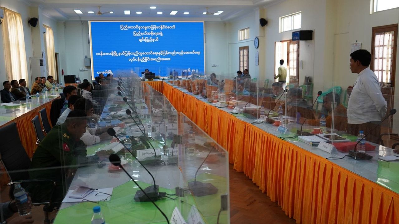 စစ်ကောင်စီခန့် ချင်းပြည်နယ်အစိုးရအဖွဲ့ဦးဆောင်မှုဖြင့် ထန်တလန်မြို့နယ် ပြန်လည်ထူထောင်ရေးနှင့် ပြန်လည်တည်ဆောက်ရေးဆိုင်ရာလုပ်ငန်းညှိနှိုင်းအစည်းအဝေးတစ်ရပ်ကို ဇွန်လ (၃၀) ရက်နေ့ ဟားခါးမြို့တွင် ကျင်းပခဲ့ကြသည်။