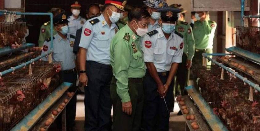 ၎င်းအပြင် စစ်အုပ်စုခေါင်းဆောင်သည် ဇူလိုင်လ ၄ ရက်နေ့က ပုသိမ်မြို့လေတပ်စခန်းရှိ ကြက်ခြံ၊ ဘဲခြံများကို သွားရခဲ့ပြီး စစ်တပ်ပိုင် စိုက်ပျိုးရေးနှင့် မွေးမြူရေးလုပ်ငန်းများကို တိုးတက်အောင် လုပ်ဆောင်ရမည်ဟု ညွှန်ကြားခဲ့ကြောင်း အမည်မဖော်လိုသူဝန်ထမ်းက ဆိုသည်။